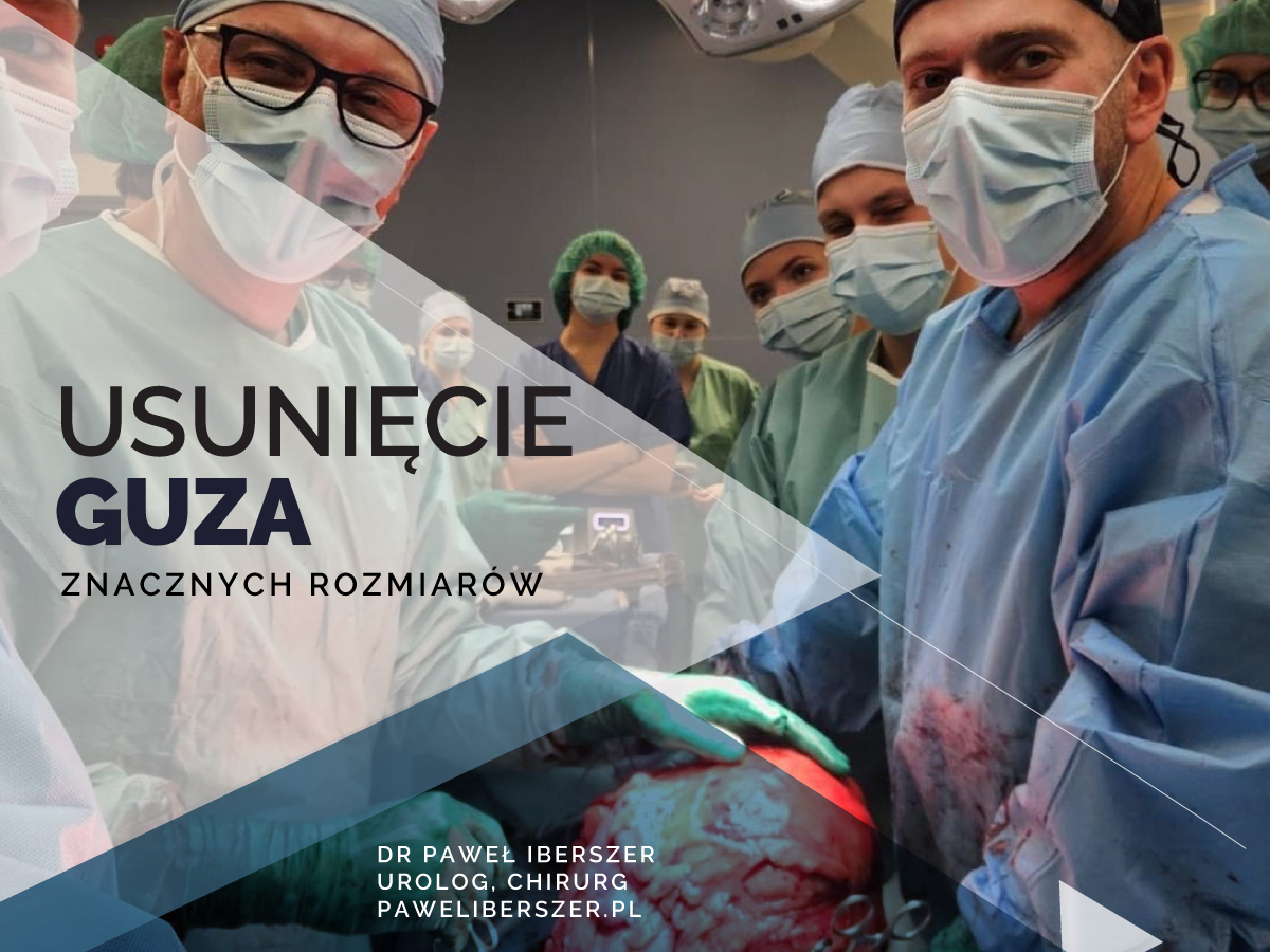 „Guz był naprawdę rekordowo duży. Wypełniał ponad połowę brzucha dużego mężczyzny. Szczęśliwie udało się go usunąć w kontrolowany sposób w zespole urologiczno-chirurgicznym. Czekamy z niecierpliwością na ekspertyzę patomorfologa, bo sami jesteśmy ciekawi co to był za „stwór”. P.S. Pacjent czuje się bardzo dobrze” — mówi dr Paweł Iberszer.